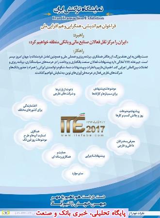 سومین نمایشگاه بین المللی تراکنش ایران از 2 الی 4 آبان ماه 1396 (24 الی26 اکتبر 2017) در محل مجتمع نمایشگاهی شهر تهران (بوستان گفتگو ) برگزار خواهد شد.
