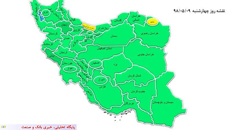 نتایج پهنه‌بندی مصرف برق کشور طی روز جاری (چهارشنبه 9مرداد) از قرارگرفتن کلانشهر مشهد و غرب استان مازندران در محدوده زرد حکایت دارد.