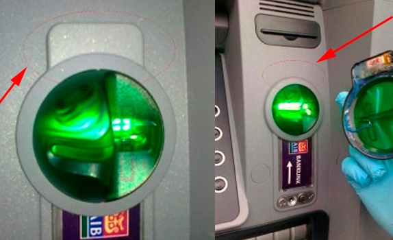 معمولا در دستگاه های خودپرداز چراغ های سبز نورانی در محل قرار دادن کارت بانکی وجود دارد ، اکر در صورتی که این چراغ قرمز یا بی رنگ (نامرئی) باشد قطعا ببه آن شک کنید و نباید از آن دستگاه استفاده کرد.